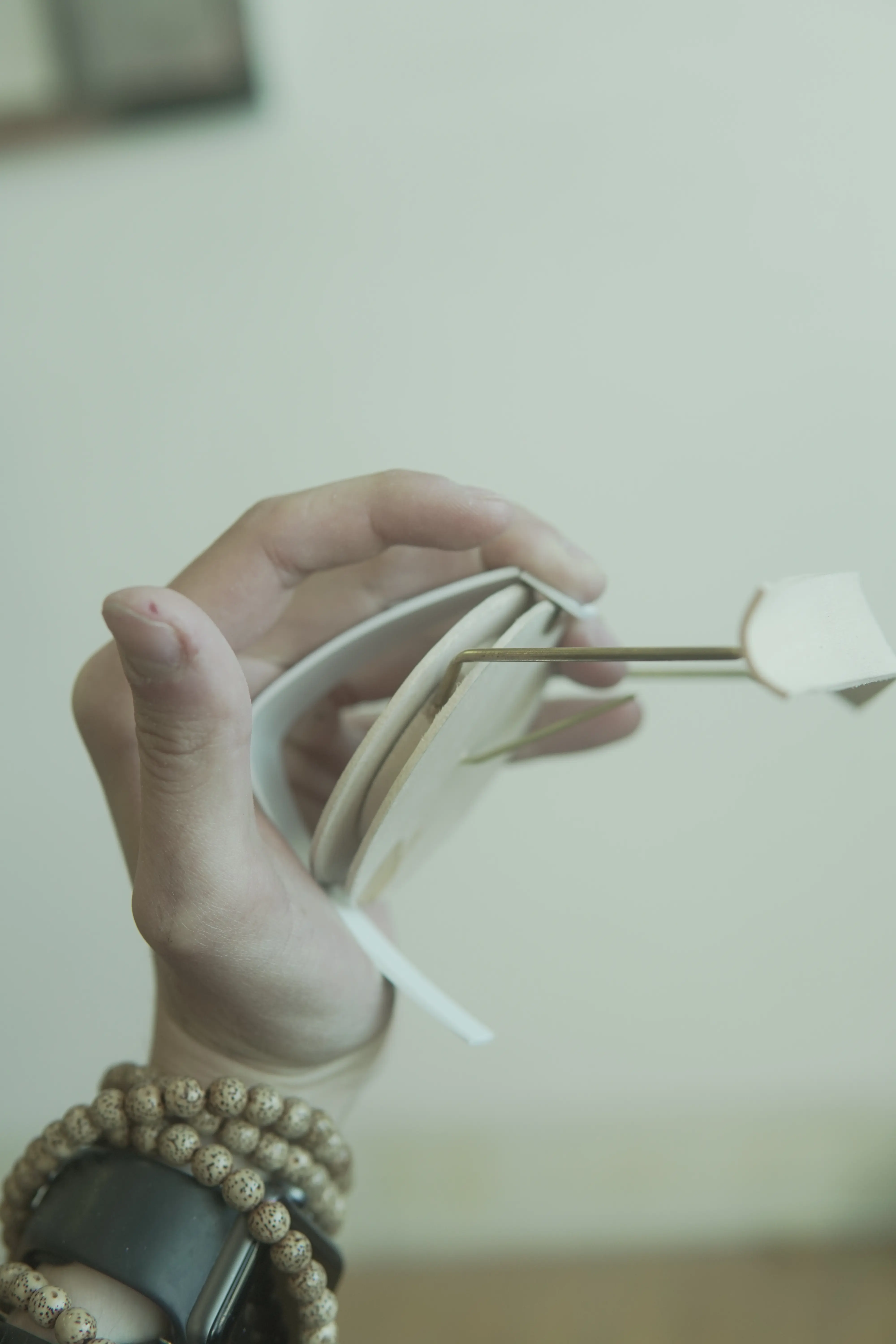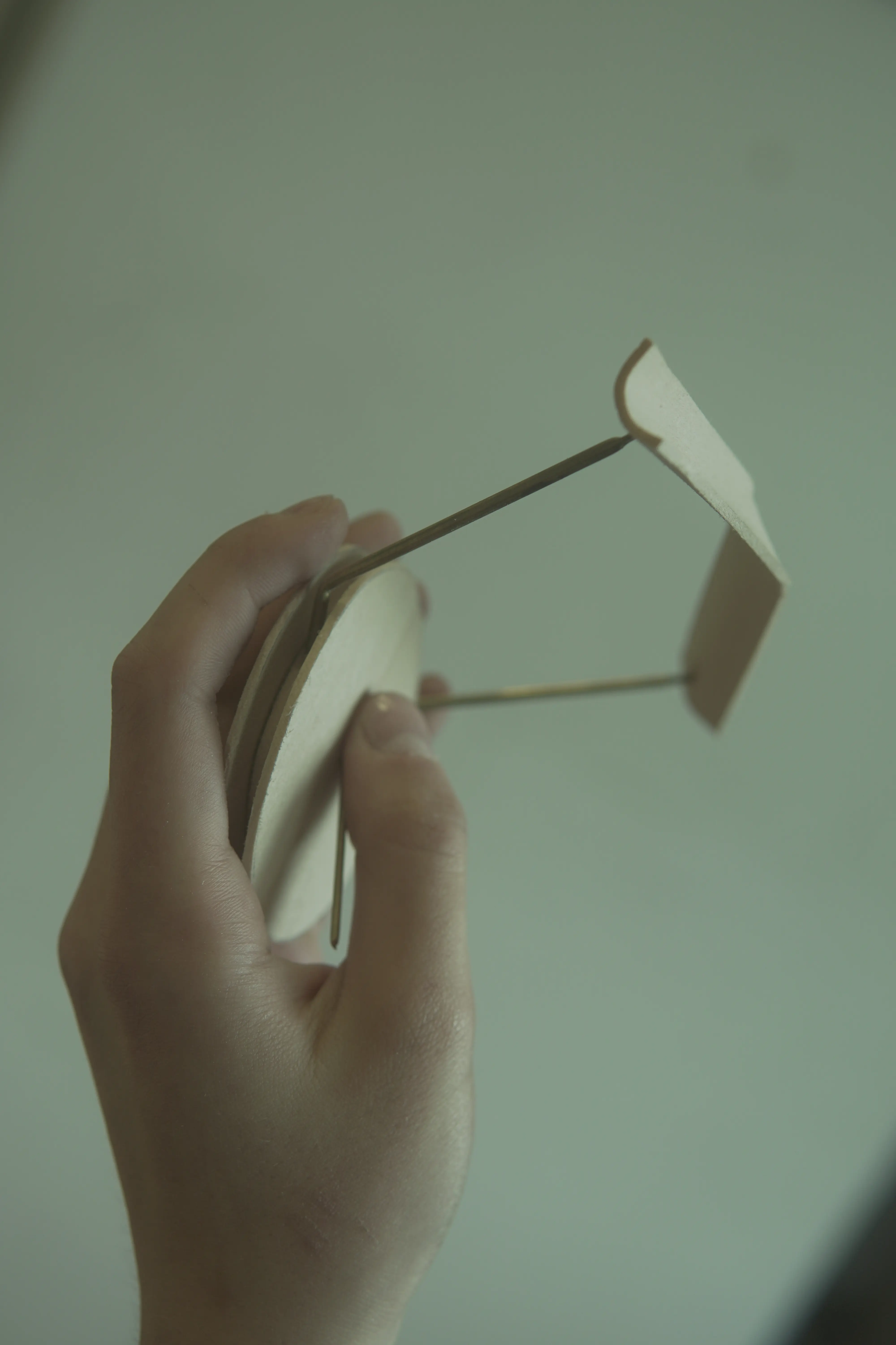 Exploring the material relationships between elastic band and wood, design a sensible working object that has playful or practical device-like characteristics. Unite form studies to determine the appropriate look, feel, make, and performance of the device. The models do not have to work, but must allow us to imagine so without distraction and interruption.