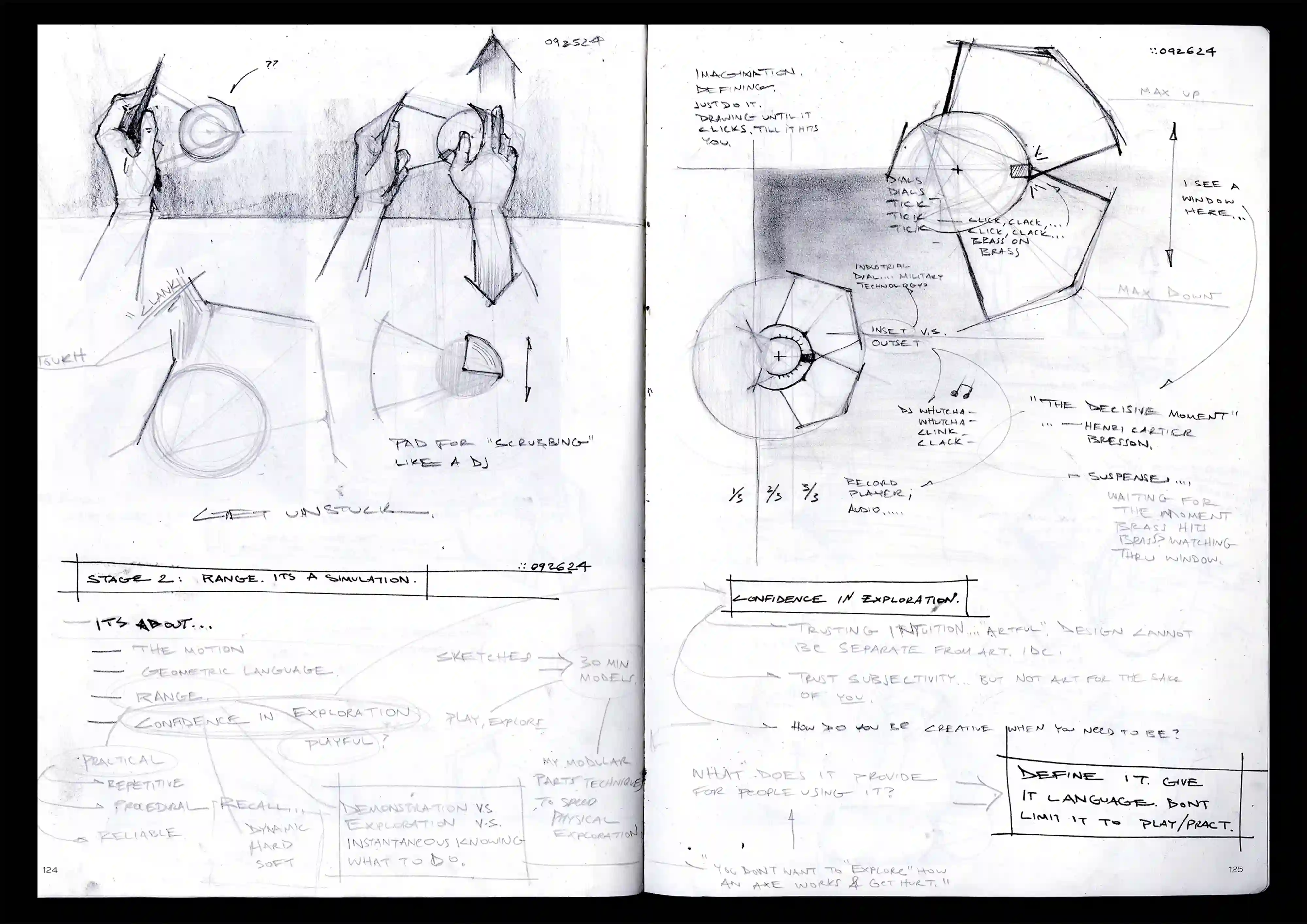 Just do something when you don't know what. Get everything out of your system on paper and start building immediately. The sketchbook can be an endless hole of unrealistic concepts never brought to fruition.